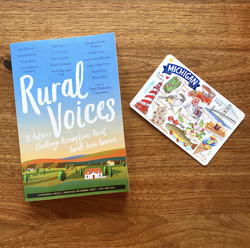 Since this anthology is a collaboration of 15 different writers and illustrators spread far and wide, there’s no way to offer readers copies signed by all of us. However, I wanted to offer a little thank you to anyone kind enough to preorder! If you order a copy of Rural Voices before the release date of October 13th, I’ll send you a Michigan postcard with a personal note. I love sending mail and these postcards are so lovely, plus they showcase some of my favorite things about my home state–including Superman ice cream!