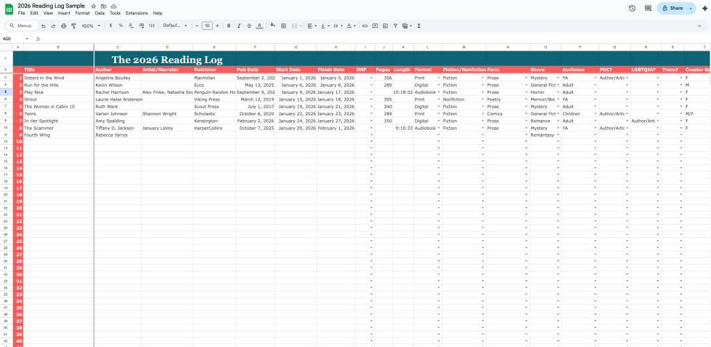 For a number of years now, I’ve created a reading log based in Google Sheets to track my yearly reading. I prefer this to sites like Goodreads because it’s private (as private as Google Sheets can be??? But not public facing!) and basing it in Google Sheets allows me to keep track of tons of stats while also making sure I can access it on the go. I’ve shared this reading log with friends and other readers for years, and thought that it might be useful to park it here on my blog for people to find more easily!